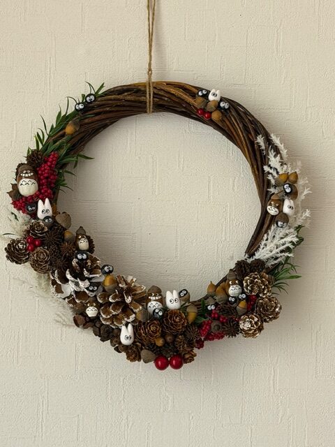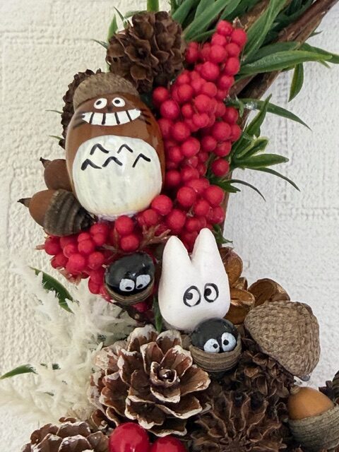 はる風スタッフNさんの手作りです。トトロはどんぐりでできています。かわいい!!